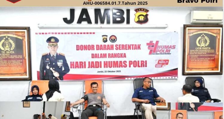 Wujud Polisi Humanis Harapan Masyarakat, Polda Jambi Gelar Donor Darah dalam Rangka Hari Jadi ke-74 Humas Polri Humas Polri|Oktober 22, 2025oleh Adminfastrespon Admin Polrifastrespon.com | Jambi – Dalam rangka memperingati Hari Jadi ke-74 Humas
